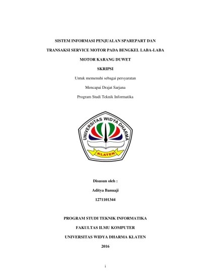 Contoh Skripsi Sistem Informasi Spare Part - Sistem Informasi Pelayanan Service Dan Penjualan Suku Cadang Pada Bengkel Via Motor Sport Skripsi Diajukan Untuk Memenuhi Salah Satu Syarat Kelulusan Strata Ppt Download - Informasi adalah sebuah data yang telah diproses sehingga menjadi bentuk yang memiliki nilai yang .. Untuk selanjutnya dalam penyusunan skripsi ini penulis mengambil judul "aplikasi penjualan sparepart motor berbasis android". Facebook · twitter · google . Skripsi, sistem informasi, ft unp kediri, 2017. Tugas akhir ini bertujuan membangun sebuah sistem penjualan online. Gambar 9 halaman penjualan spareparts.